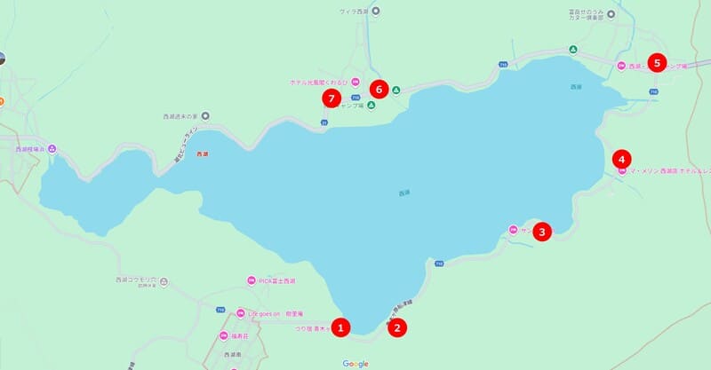 山梨県南都留郡富士河口湖町に位置する淡水湖です。